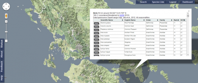 Αν επισκεφτείτε την εφαρμογή στον browser σας, θα μπορέσετε να αναζητήσετε κάποιο φυτό ή ζώο με το όνομά του, ή να κάνετε δεξί κλικ σε κάθε περιοχή του πλανήτη στον χάρτη και να δείτε μία λίστα με είδη που είναι διαθέσιμα εκεί, σε μία ακτίνα, επιλέγοντας από μία drop down list την οικογένεια που σας ενδιαφέρει. Η πλήρης λίστα των ειδών, είναι και διαδραστική, επιτρέποντάς σας να προχωρήσετε σε πιο εξειδικευμένες αναζητήσεις για κάθε είδος.
